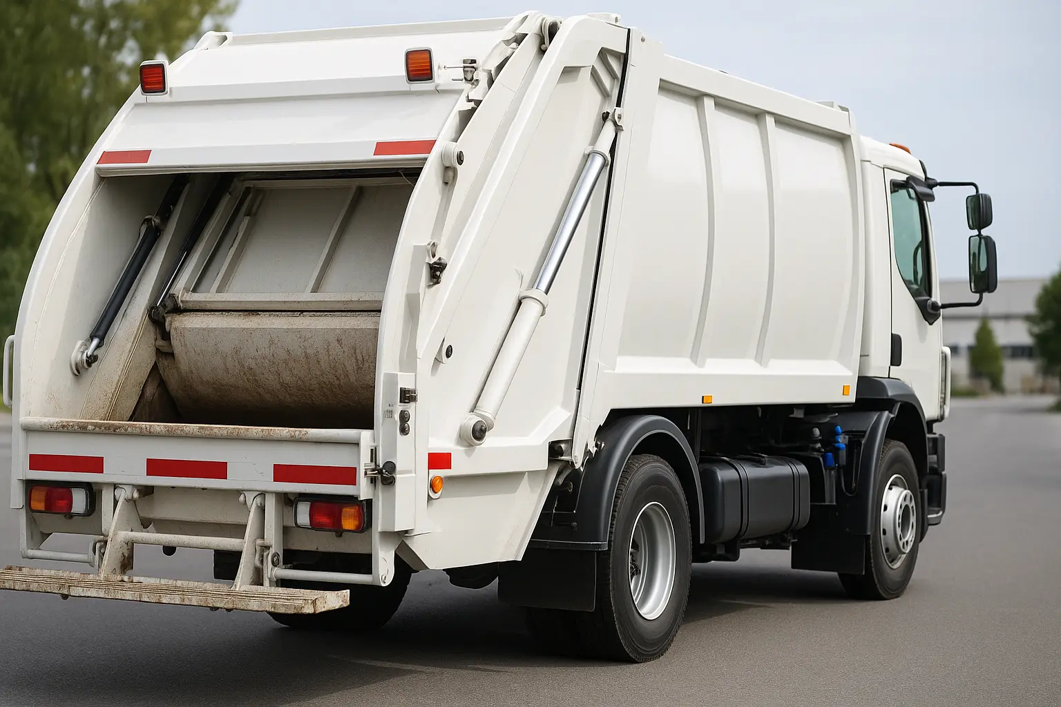 Komprimering og fremdrift: Den bagmonterede komprimeringsbil bruger en hydraulisk skubbe til at kompakt affaldet for at øge fyldtætheden.