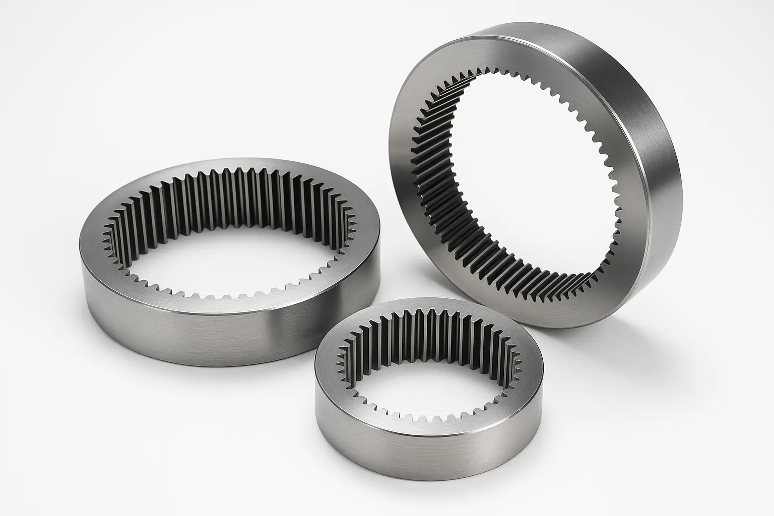 Vores ringudstyr er lavet af karbureret legeringsstål, højstyrke støbt stål eller tilpassede rustfrit stålmaterialer og er præcision smedt og varme behandlet i henhold til brugsscenariet. Tandoverfladehårdheden kan nå op til HRC60. Med hensyn til teknologi bruger vi flere præcisionsbehandlingsforbindelser såsom CNC-hobbing, tandprofiltrimning og ringgearets indre diameter, og bruger gearmålingscenteret til fuldt at inspicere nøgledimensioner såsom tandretningsfejl og radial runout for at sikre, at hvert produkt kan opnå høj matchning og interferensfri operation med planetarisk bærer og gearaksel.