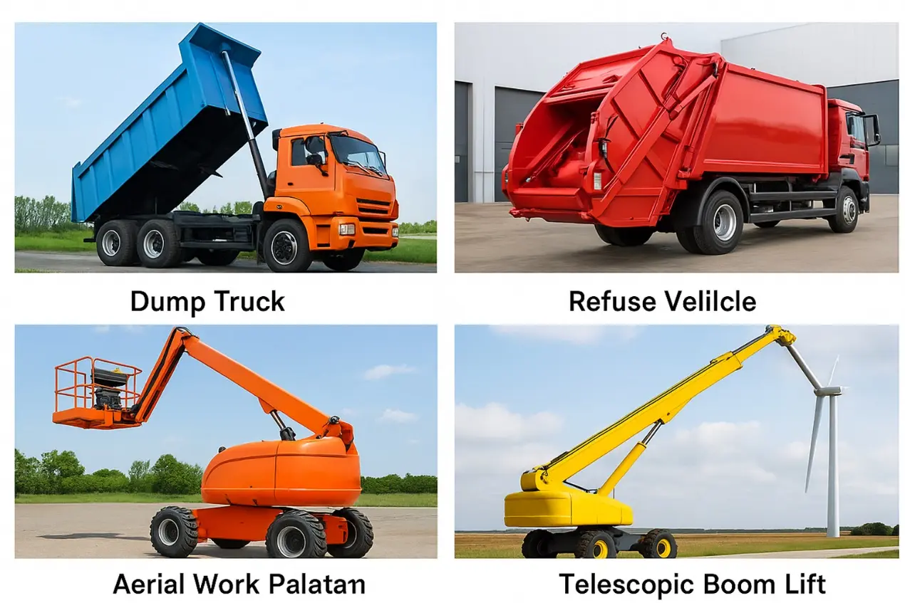 I dumpvogne bruges ofte multi-trins hydrauliske cylindre til at løfte vognen for at opnå hurtig dumping af tunge belastninger; I sanitetsskravsbiler kører hydrauliske cylindre bagdækningsåbning og komprimeringssystem for at sikre effektiv drift; På luftarbejdsplatforme som luftplatforme eller saksbiler kontrollerer de løftarmen og hæver stabilt driftsplatformen; Derudover er landbrugsdumpvogne, trailerhydrauliske halebræt og konstruktionsbunke-drivere også afhængige af deres pålidelige multi-trins teleskopiske egenskaber for at gennemføre arbejdshandlinger.